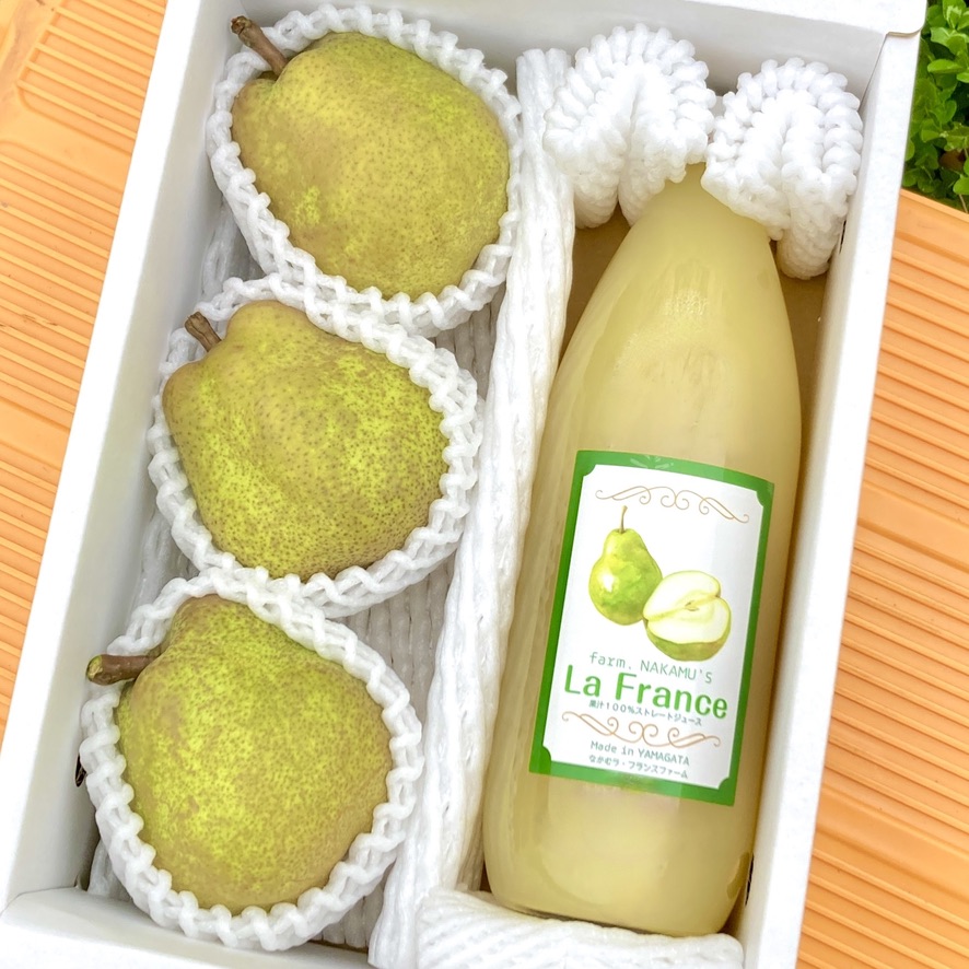 山形県産 ラ・フランス3玉(1kg)とジュース(1ℓ)のセット🍐